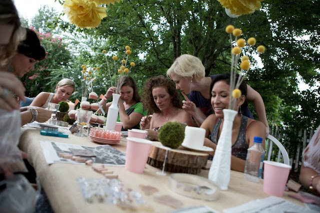 The set-up was beyond cute, as if Pinterest had exploded all over the back yard. It was truly beautiful and I admit I felt a little out of my league! I was soon set at ease as we started to create magnets, ornaments, wall hangings and sweet little dishes for little Charley.